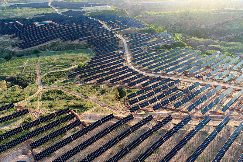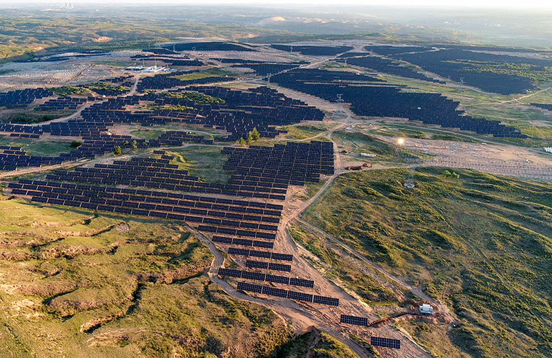 伊金霍洛旗天驕綠能50萬千瓦采煤沉陷區生態治理光伏發電示范項目(無人機照片)。
